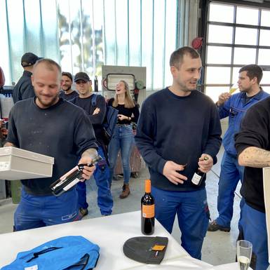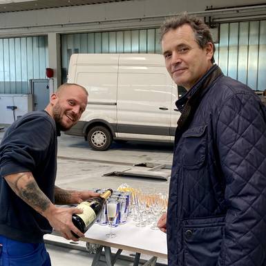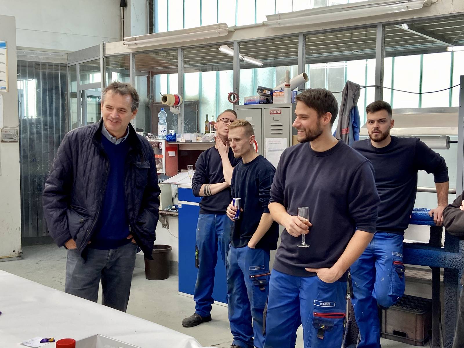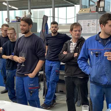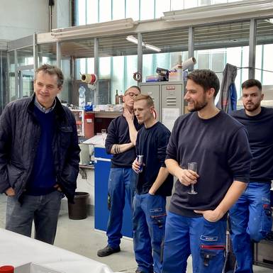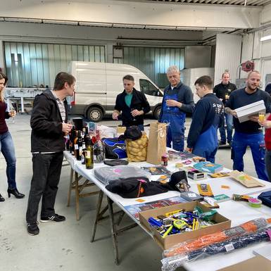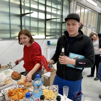 und der bevorstehende Weihnachtsurlaub von 23.12. -01.01.2020 wurden heute gebührend mit Sekt, Bier und "Leberkassemmerl" gefeiert. Wie jedes Jahr fand auch heuer wieder eine Verlosung statt, die von "Zeremonienmeister" Stefan reibungslos durchgeführt wurde:-) Wir alle freuen uns auf ein paar geruhsame, entspannendeTage und sehen dem neuen Jahr mit Zuversicht entgegen.