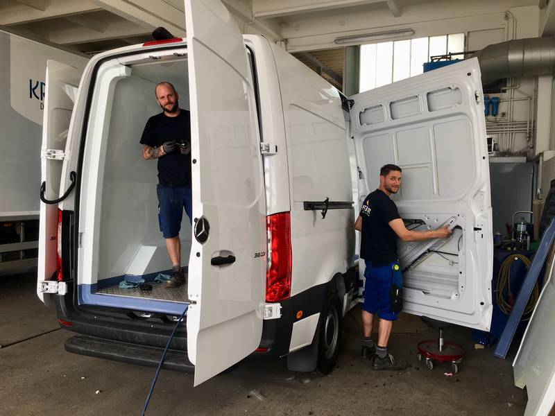 Egal, ob LKW-Aufbauten, Umbauten oder Lackierungen bzw. Reparaturen, wir haben für jedes Anliegen und jeden Transport die passende,individuelle Lösung. Viele Klein- und Großunternehmen schätzen unsere Erfahrung und Kompetenz. In diesem Fall das Magistrat St. Pölten. Unser Mitarbeiter Andres repariert hier gerade den Kotflügel eines Abrollkippers, damit das "Edelgraffl" auch wieder rechtzeitig und verlässlich abgeholt werden kann. Im anderen Fall bauen unsere Mitarbeiter Stefan und Andreas für die Firma Servoking eine Innenisolierung in einen Mercedes Sprinter Kastenwagen ein, natürlich ATP-tauglich mit Kühlung.