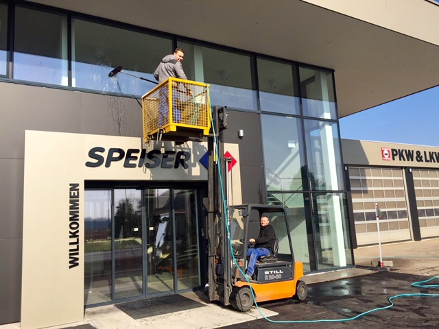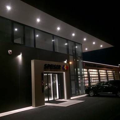 Die angeschlossene PKW-Direktannahme mit integrierter Hebebühne und blendfreiem Licht garantiert eine ausgezeichnete Sicht auf Schäden aller Art.