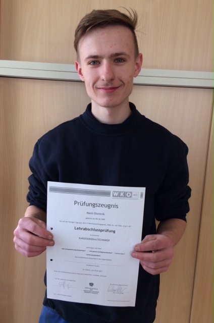 Wir sind stolz auf Dominik, dass er die Lehrabschlussprüfung für Karosseriebautechniker